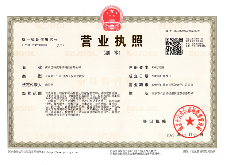 南京巴詩克環保科技有限公司,座落在江蘇省南京市化學工業園區紅山精細化工園(六合區),交通便利,工業發達,環境優美。公司注冊資金500萬元,占地面積20多畝。項目總投資5000萬元,建成廠房及附屬設施9000平方米,新購置設備224臺套。項目全部建成投產后可實現年銷售收入6500萬元、利稅6···